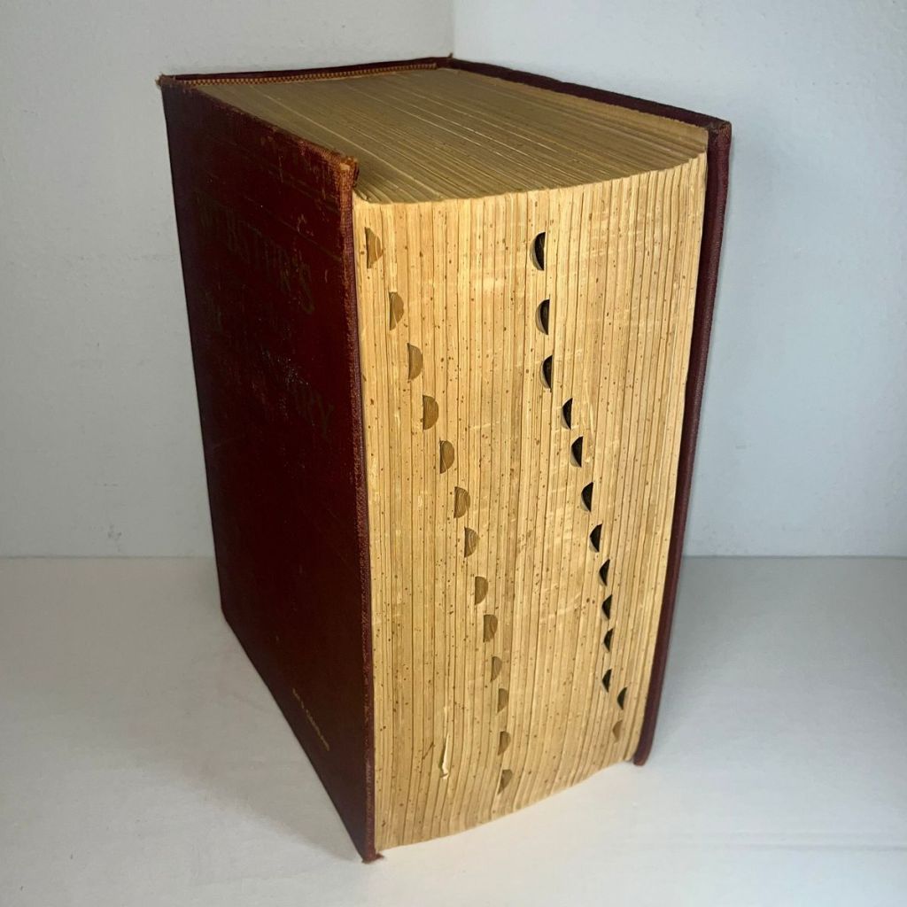 A huge, thick, very battered book, isolated on white. Space for text on the spine, or the stained front cover. Clipping path included