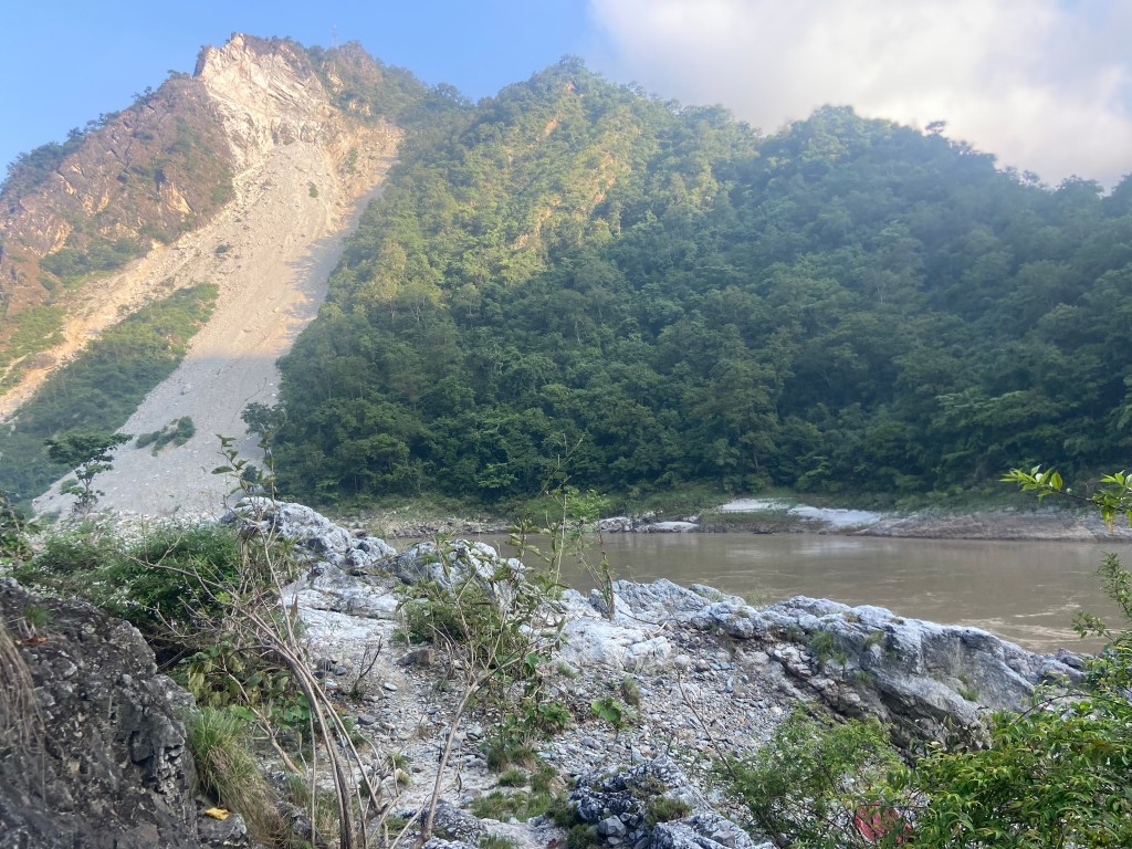 The flowing river.